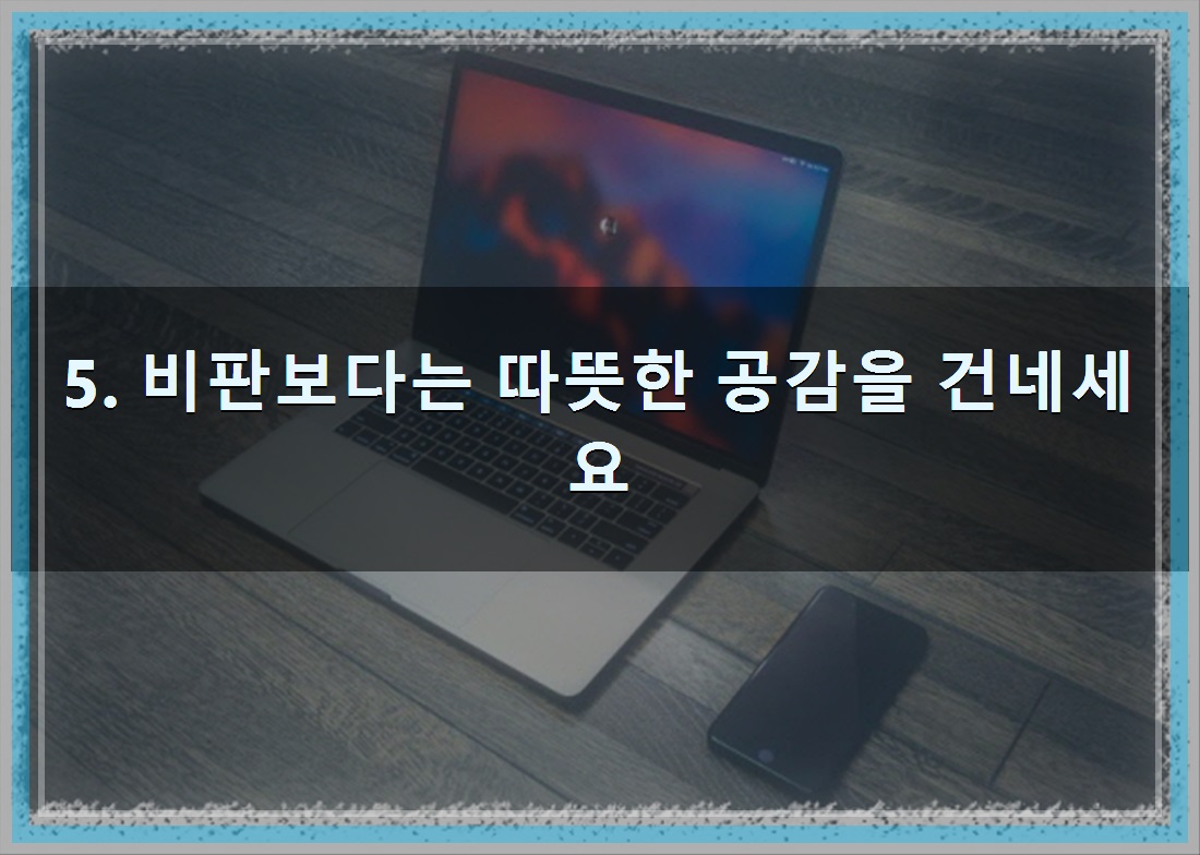 INFP는 비판에 매우 민감하게 반응할 수 있어요. 그의 생각이나 감정에 대해 비난하거나 평가하기보다는, 따뜻한 공감과 이해를 표현해주세요. 그의 입장에서 생각하고 그의 감정을 헤아리는 당신의 모습에 그는 더욱 마음을 열게 될 거예요.